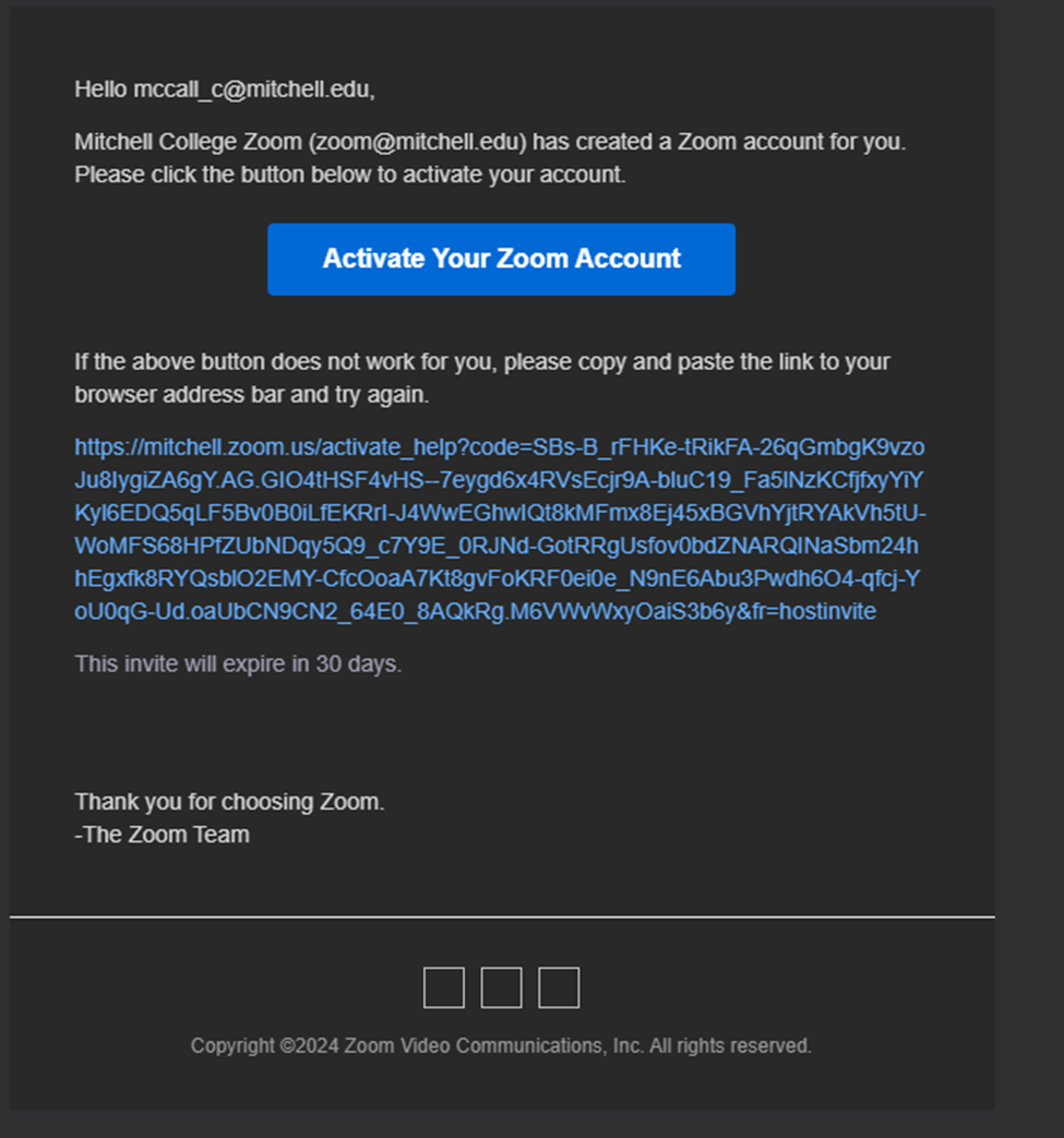 1. After OIT adds you email to Zoom, Zoom will send you an email invite.